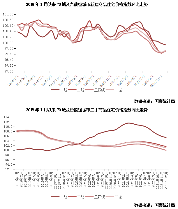 此外值得注意的是,12月70個(gè)大中城市新建商品住宅和二手住宅價(jià)格同比分別上漲2%和1%,其中二線城市分別上漲2.8%和1.5%。多個(gè)城市出臺(tái)二手房交易指導(dǎo)價(jià)后,2021年二手住宅市場(chǎng)遭遇較大價(jià)格降幅,同比降幅顯著。