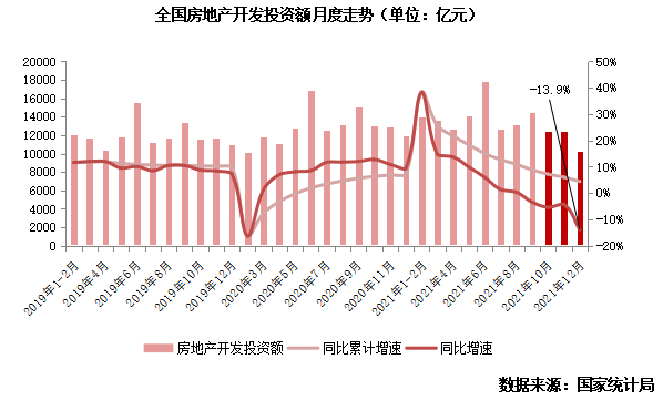 據(jù)國家統(tǒng)計(jì)局?jǐn)?shù)據(jù):2021年,全國房地產(chǎn)開發(fā)投資14.8萬億元,比上年增長4.4%。12月單月完成開發(fā)投資額僅10288億元,同比下降13.9%,為4年同期新低。