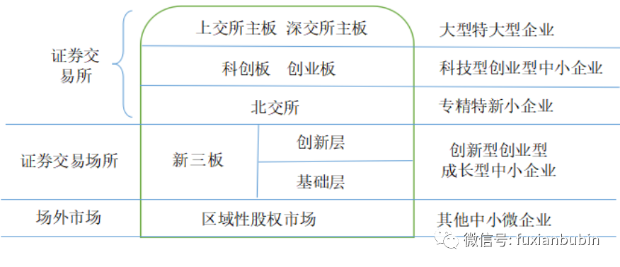 從企業數量和規模上來區分,常用金字塔來形容我國多層次資本市場結構:區域性股權市場為塔基,區域性市場、場外市場,但其擁有和服務著最海量的中小微企業;新三板為塔中,全國性證券交易場所、場內市場,服務廣大的創新型創業型成長型中小企業,承擔承上啟下的重任;京滬深三交易所為塔尖,服務企業相對較少,但企業相對已很成熟。如果根據市場的重要性來看,又是一個倒金字塔結構,塔尖對我國經濟的重要性最大。