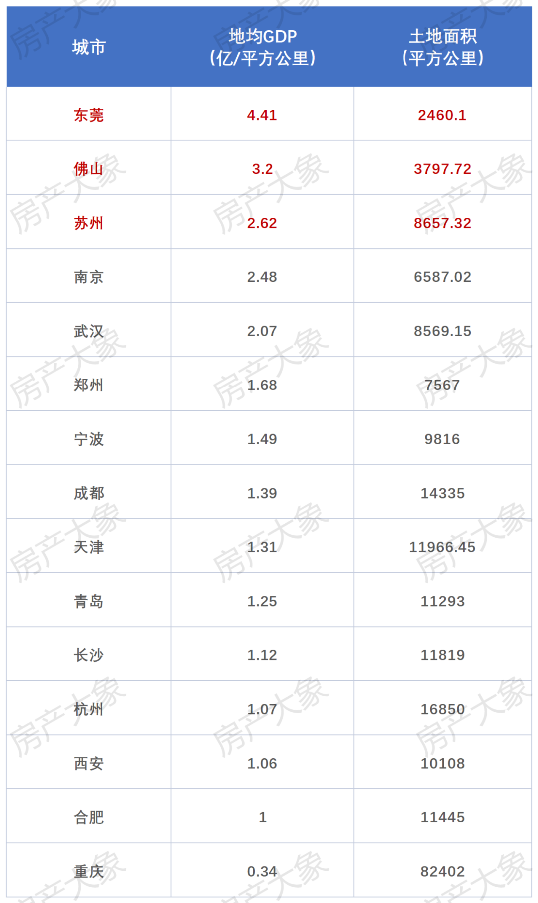 最能體現一個城市經濟發展效率的,莫過于地均GDP(每平方公里產生的GDP)