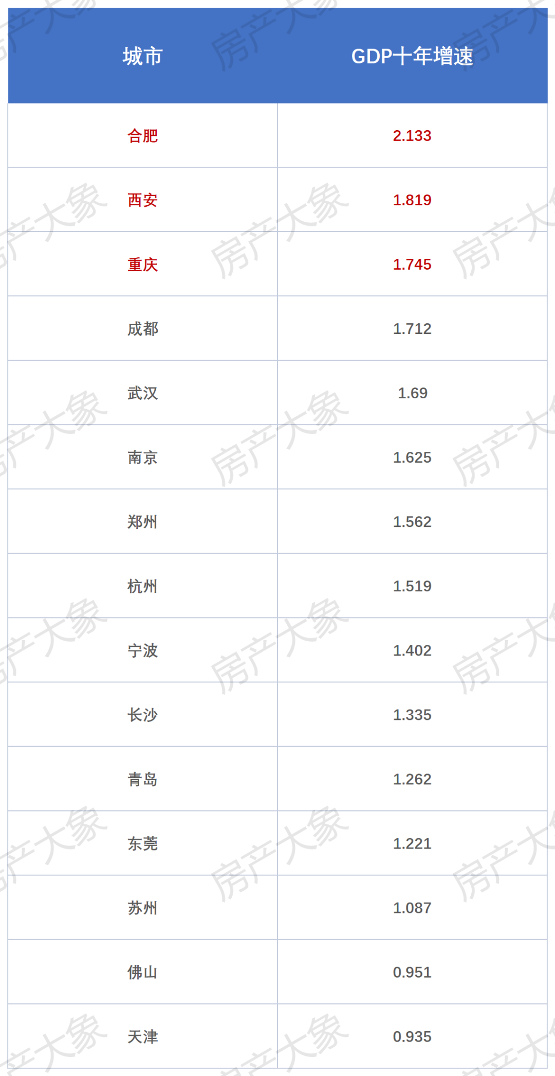 GDP增速,反映城市競爭力的強弱,而過去10年,合肥成為進步最大的城市。
