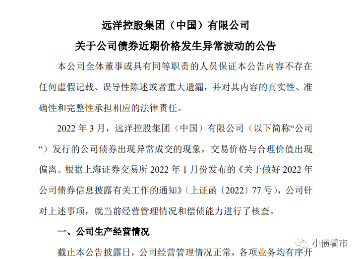 3月30日,“21遠(yuǎn)洋01”出現(xiàn)異常成交遭臨停,遠(yuǎn)洋控股集團(tuán)(中國)有限公司(以下簡稱“遠(yuǎn)洋控股”)緊急回應(yīng)。