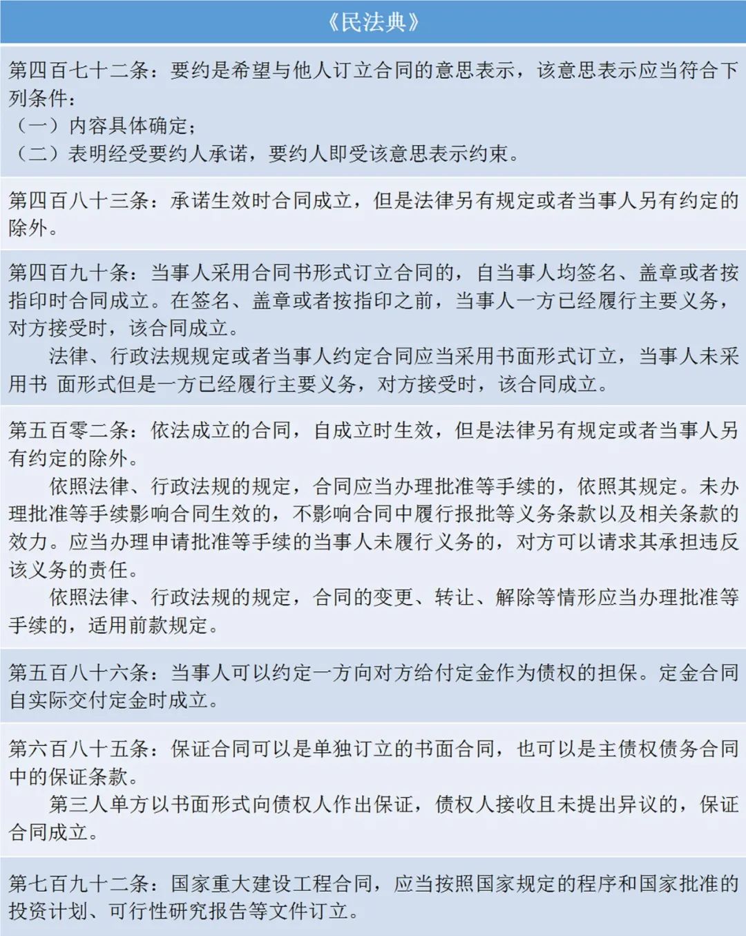 合同成立是合同生效的前提,合同不成立,則合同項下所設(shè)定的權(quán)利義務(wù)即沒有存在的基礎(chǔ)。依據(jù)《民法典》第四百八十三條,承諾生效時合同成立,但是法律另有規(guī)定或者當(dāng)事人另有約定的除外。