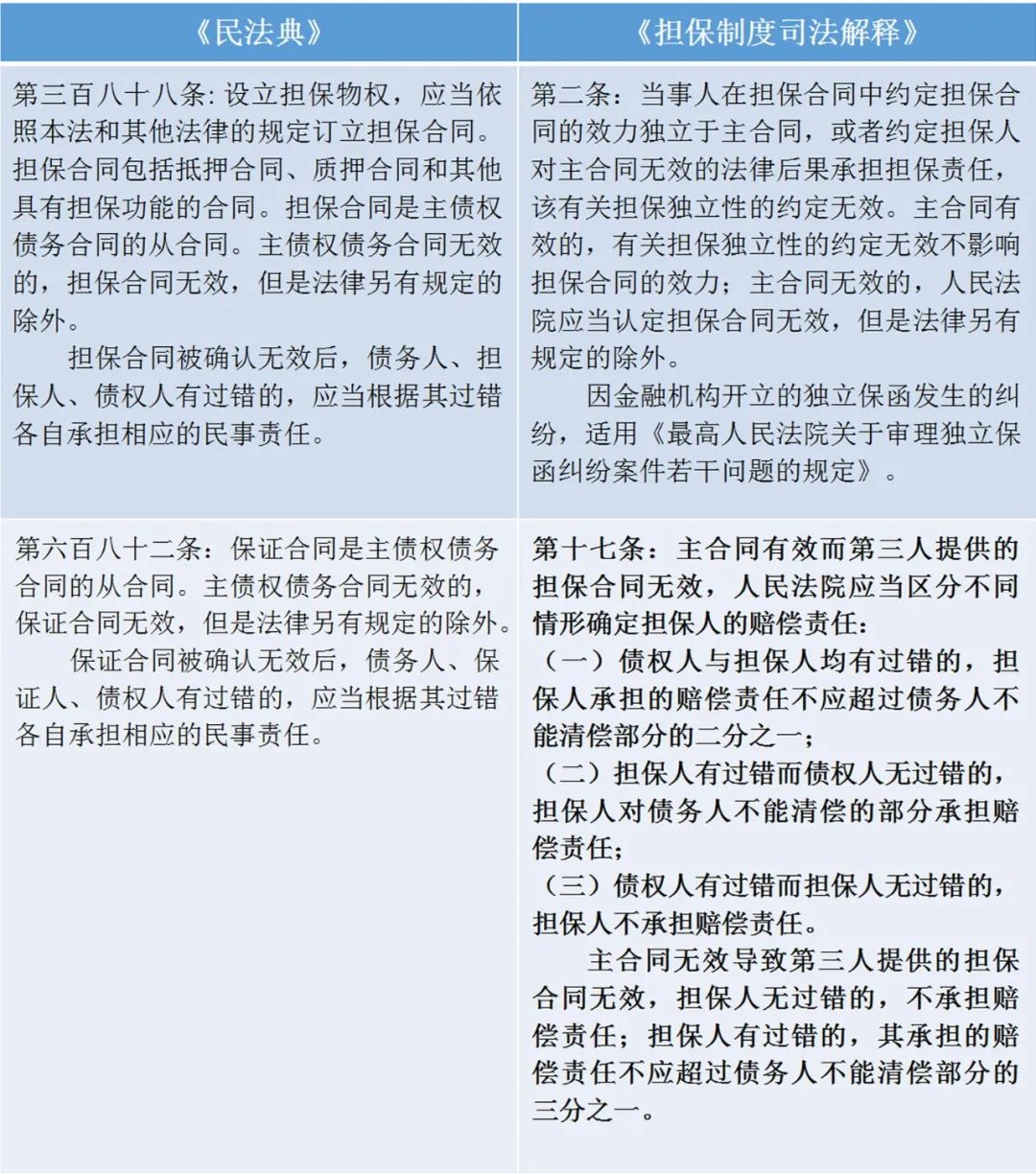 (1)從擔(dān)保合同的從屬性來看,主合同無效,則擔(dān)保合同無效,擔(dān)保人無過錯的,不承擔(dān)賠償責(zé)任;擔(dān)保人有過錯的,其承擔(dān)的賠償責(zé)任不應(yīng)超過債務(wù)人不能清償部分的三分之一。法條鏈接: