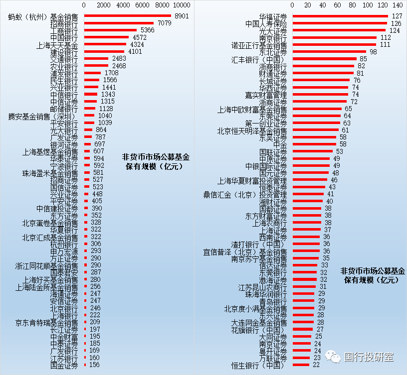 需要說(shuō)明的是,前100大榜單是按照股票+混合公募基金的保有規(guī)模來(lái)排序,并非是按照非貨幣公募基金的保有規(guī)模排序,這表明中基協(xié)對(duì)銷售機(jī)構(gòu)的權(quán)益類基金保有規(guī)模更為重視。