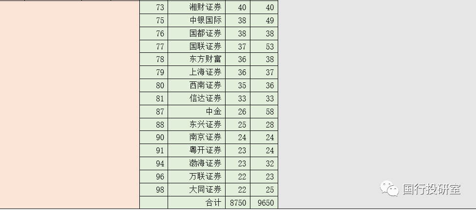 3、另有15家券商的保有規(guī)模超過(guò)100億元(合計(jì)達(dá)到3943億元、占全部47家券商的41%),從高到低依次為興業(yè)證券(448億元)、平安證券(405億元)、中信建投(390億元)、東方證券(352億元)、申萬(wàn)宏源(293億元)、方正證券(290億元)、國(guó)泰君安證券(287億元)、安信證券(247億元)等。
