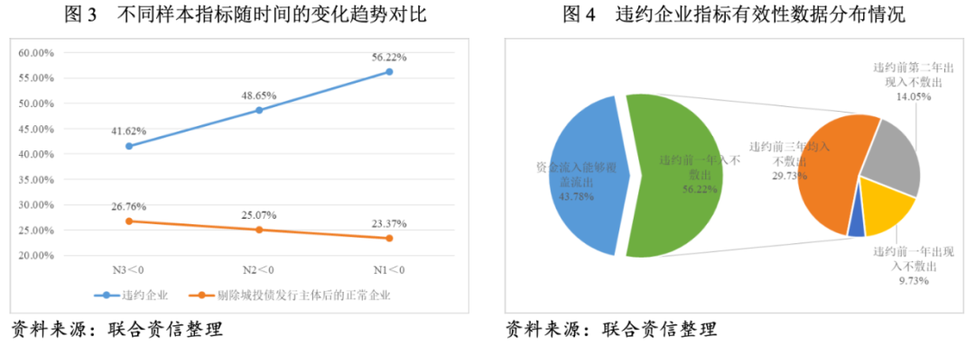 ①要素不全面,即由于外部支持資金、投資支出等要素的隨機性較大,預測準確性較低,現有“入”和“出”的各要素未覆蓋全部的資金流入或流出渠道。例如,目前“入”中未包括外部支持資金中的股東注資或關聯方資金借貸、再融資中的信用融資帶來的資金流入等,這可能是導致正常經營企業指標持續為負的原因,但同時也可能反映出這些企業對外部支持和信用再融資的依賴度高,同樣也需要關注。