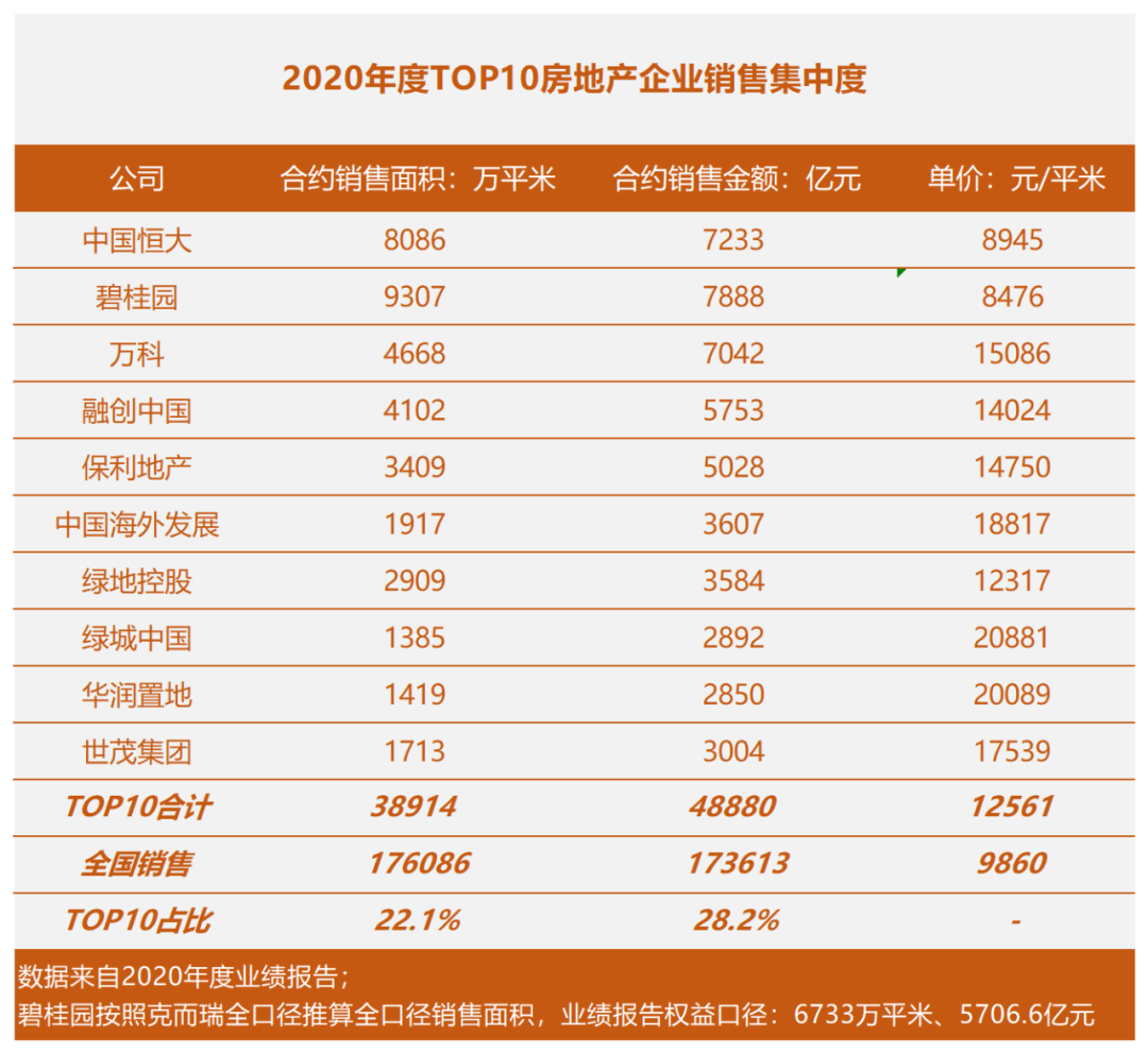 TOP10的銷售份額已經占據全國的28.2%。