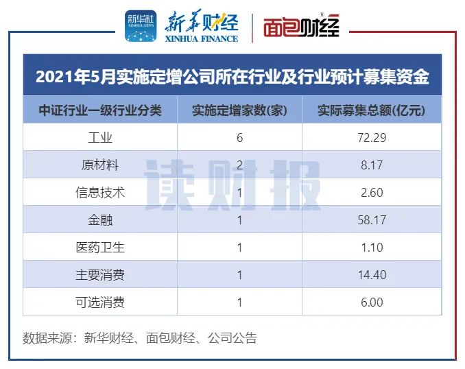 原標題: 【讀財報】5月上市公司定增動態:實際募資近163億元 同比降逾六成