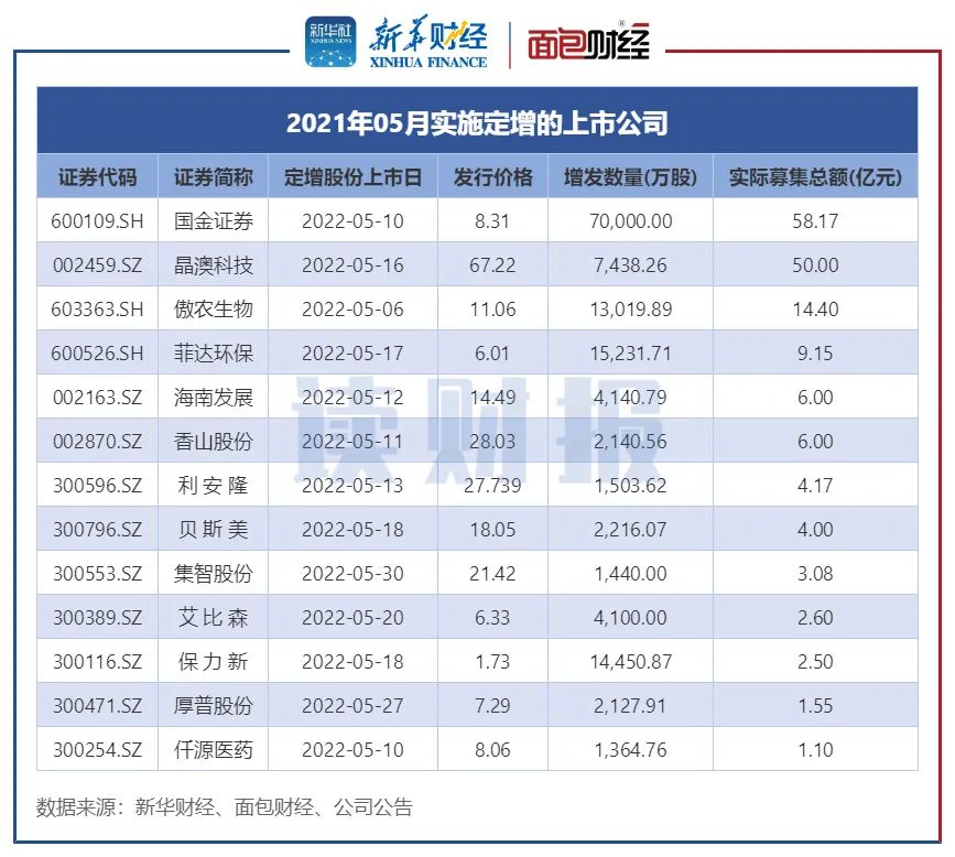 5月上市公司定增動態:實際募資近163億元 同比降逾六成