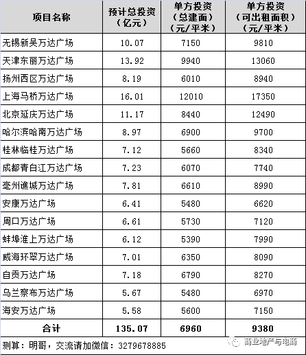 截至2019年12月末,在建萬達廣場共有16個,分布于北京、上海、天津、哈爾濱、桂林等地,規劃總建筑面積合計194.1萬平方米,總可租面積為144萬平方米,總投資額合計135億元。