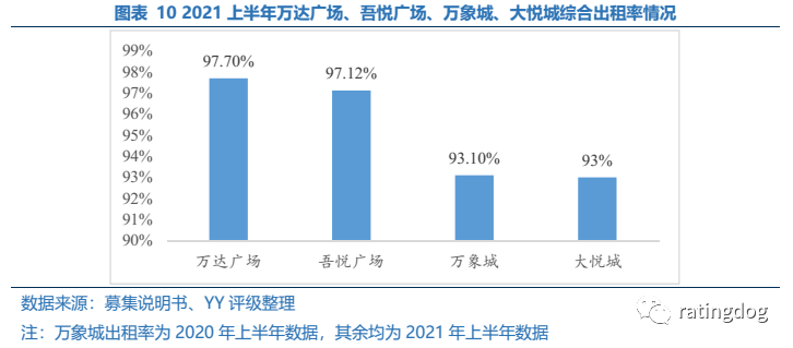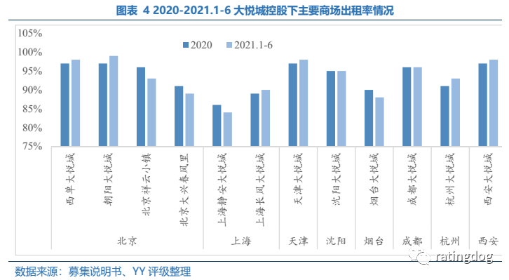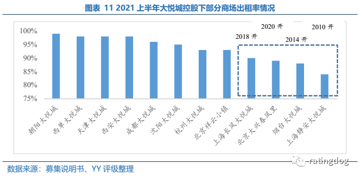 整體來看,大悅城具有良好的股東背景和明確的集團(tuán)內(nèi)部定位,商業(yè)物業(yè)與住宅業(yè)務(wù)并舉,其中商業(yè)項目整體出租率良好,有一定品牌效應(yīng)