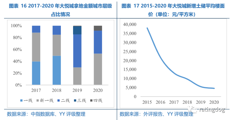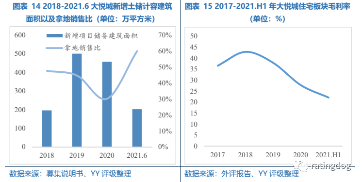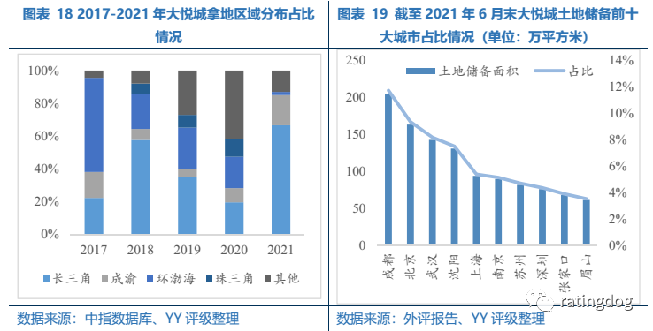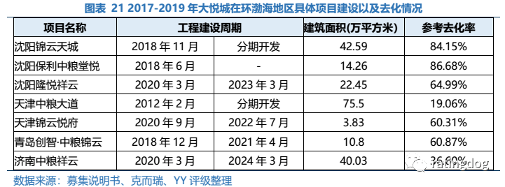 整體來看,大悅城具有良好的股東背景和明確的集團(tuán)內(nèi)部定位,商業(yè)物業(yè)與住宅業(yè)務(wù)并舉,其中商業(yè)項目整體出租率良好,有一定品牌效應(yīng),而住宅業(yè)務(wù)也展現(xiàn)了一定的銷售韌性;以銀行貸款為主的債務(wù)結(jié)構(gòu)良好,短期信用風(fēng)險傳染可能性較低。
