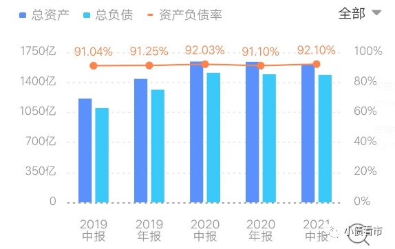 截至2021年6月末,建業(yè)地產(chǎn)總資產(chǎn)為1613億元,總負(fù)債1486億元,凈資產(chǎn)127.5億元,資產(chǎn)負(fù)債率高達(dá)92.1%。