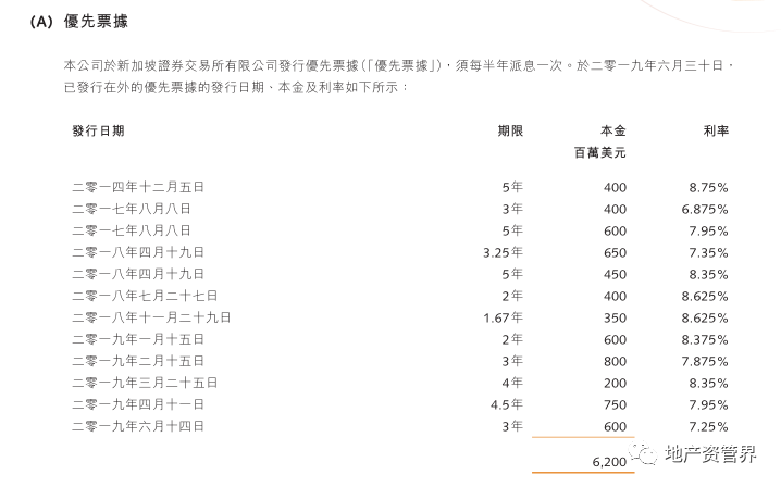首先,是優先票據。融創于新加坡證券交易所有限公司發行優先票據,截止2019年6月30日,已發行在外的優先票據本金累計為62億美元。據一位新加坡債券從業人士表示,融創的美元債在市場上很搶手,“最近幾筆都是超發,投資者基本要搶額度。而且,相比一些閩系房企,融創的發債利率算是低的?!?/p>