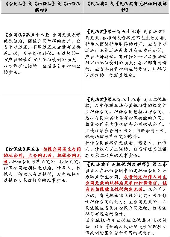 對上述裁判思路進行梳理后發(fā)現(xiàn),法院最后得出兩自然人承擔(dān)擔(dān)保責(zé)任的結(jié)論是建立在“進而”認(rèn)定成立的基礎(chǔ)上。但對于債務(wù)加入人加入一個無效的債務(wù),該債務(wù)加入是否有效的問題,由于債務(wù)加入與保證(連帶責(zé)任保證)在功能上相類似,債務(wù)加入的效力認(rèn)定在一定程度上可參照保證的效力認(rèn)定,而對于主合同無效法律后果所作擔(dān)保的擔(dān)保合同效力,目前主流觀點認(rèn)為應(yīng)屬無效。本次《最高人民法院關(guān)于適用<中華人民共和國民法典>有關(guān)擔(dān)保制度的解釋》第二條更是明確支持了這一觀點,即“當(dāng)事人約定擔(dān)保人對主合同無效的法律后果承擔(dān)擔(dān)保責(zé)任,該有關(guān)擔(dān)保獨立性的約定無效”。退一步講,即使認(rèn)定該債務(wù)加入有效,表面上看擔(dān)保人是對該加入債務(wù)所作擔(dān)保,但對于擔(dān)保人而言,債務(wù)加入人與主債務(wù)人屬同一層級,擔(dān)保人本質(zhì)上仍屬于對原債務(wù),即對無效合同所作擔(dān)保(或?qū)χ骱贤瑹o效的法律后果所作擔(dān)保),擔(dān)保合同仍將歸于無效。