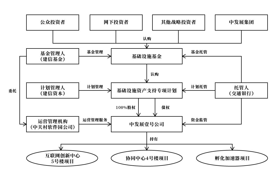 此外,項目公司向交通銀行申請4.61億元固定資產(chǎn)貸款,加上專項計劃給項目公司發(fā)放的貸款,共計20.02億元,用于償還項目公司對中關村發(fā)展集團股份有限公司(以下簡稱“中發(fā)展集團”)原負有的債務。項目公司(基礎設施資產(chǎn))的原始權益人為中關村軟件園公司,控股股東為中發(fā)展集團。