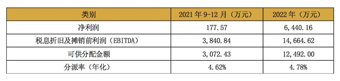 根據(jù)基金可供分配金額測算報告,2022年EBITDA為14,664.62萬元,略高于2020年的14,323.14萬元。2021年9月30日至2021年12月31日及2022年度,預測的建信中關村REIT投資人凈現(xiàn)金流分派率(年化)分別為4.62%及4.78%。此前,東吳蘇園產(chǎn)業(yè)REIT、華安張江光大REIT、博時蛇口產(chǎn)園REIT三支園區(qū)基礎設施REIT項目預期派息率分別為4.5%、4.16%、4.74%。