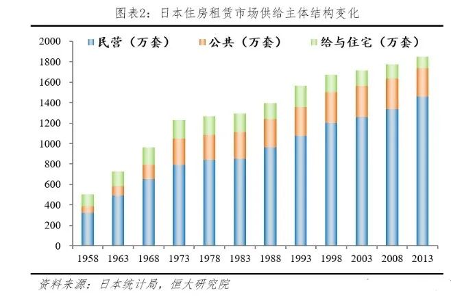 從1958到2013年,日本住房租賃供給市場結構中,平均每年民營租賃住房占租賃住房總量的比重為69%;