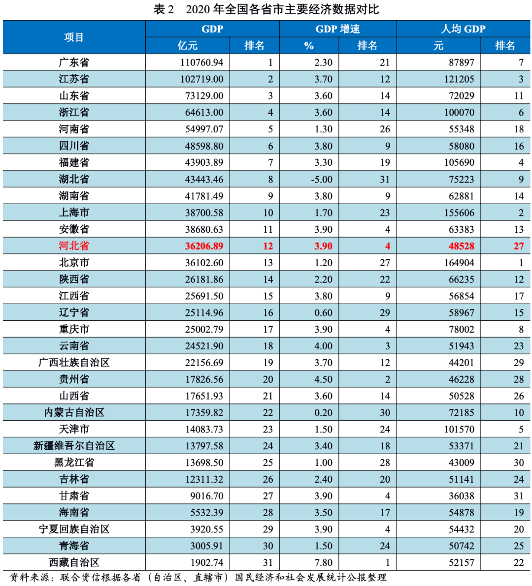 報告概要河北省經濟總量在全國排名中游,受供給側結構性改革影響,近年來經濟增長速度承壓,人均GDP在全國排名靠后。