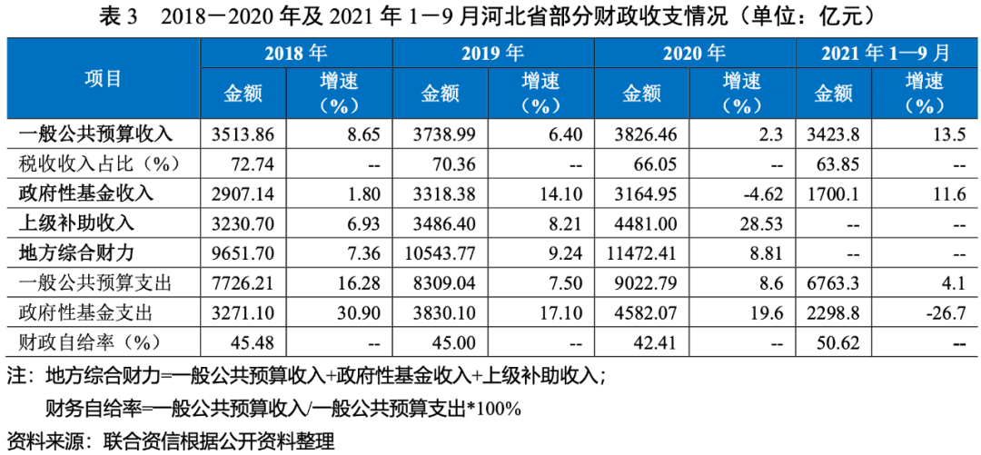 3.河北省各地市財政收入對發債城投企業債務的支持保障能力