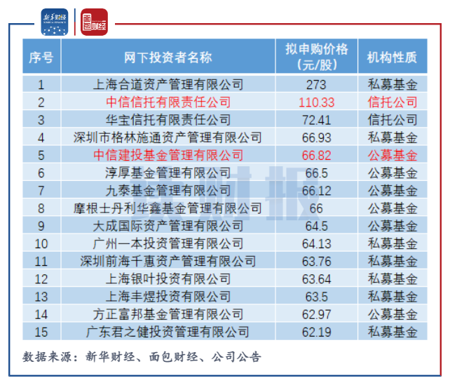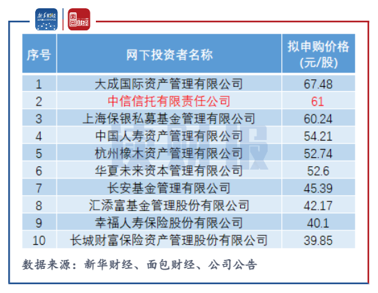 翻查公司的初步詢價數據發現,在信托公司中,中信信托報價最高,為110.33元/股;在公募基金中,中信建投基金報價最高,旗下9只公募基金產品均報價66.82元/股,遠高于剔除最高報價部分后網下全部投資者報價加權平均數38.7221元/股,報價合理性存疑。