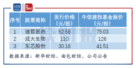 翻查這三只次新股的初步詢價數據,中信建投基金分別為迪哲醫藥、成大生物和東芯股份報價75.03元/股、126元/股、41.51元/股,報價超出發行價格的幅度分別為52.7%、14.5%、37.5%,報價均較為激進。