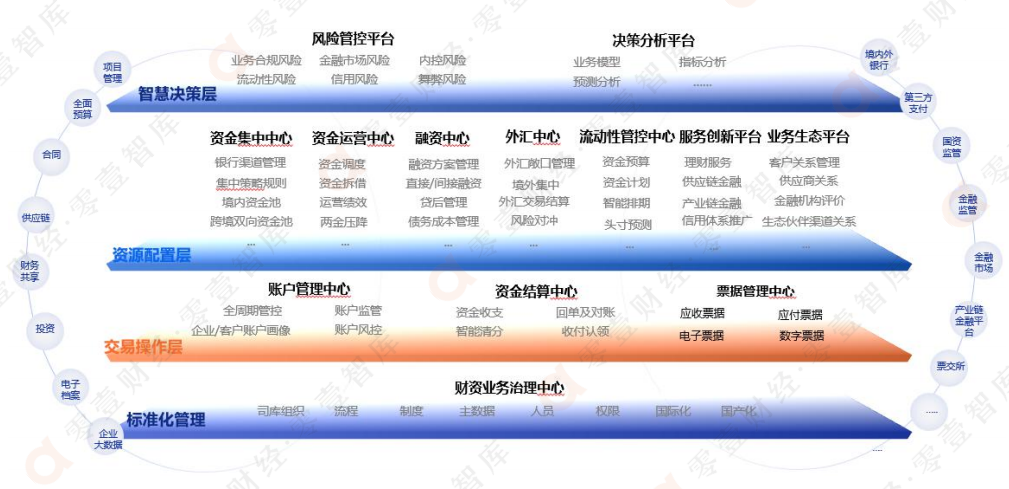 司庫并非是近些年市場才提出的新概念,其核心仍是資金的管理活動,以信息系統為管理平臺融入智能化、數字化手段,對公司以及企業的金融資源進行合理分配、辨別并控制金融風險,司庫管理超越了傳統的現金預算、賬戶管理與短期流動性管理,逐步擴展到更多的資金管理功能。