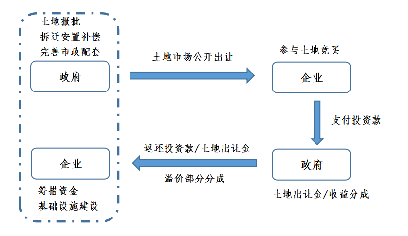 對于參與企業的前期投入資金,在地方政府獲取土地出讓金收入后,將會以合規的形式返還予參與企業