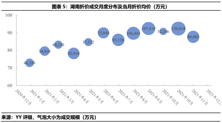 折價(jià)方面,折價(jià)主體主要位于湘潭、株洲、郴州、懷化、張家界、益陽(yáng)、岳陽(yáng)和衡陽(yáng)等區(qū)域與,其中湘潭、懷化、株洲及郴州折價(jià)主體較多。