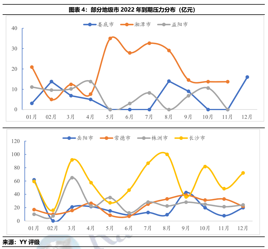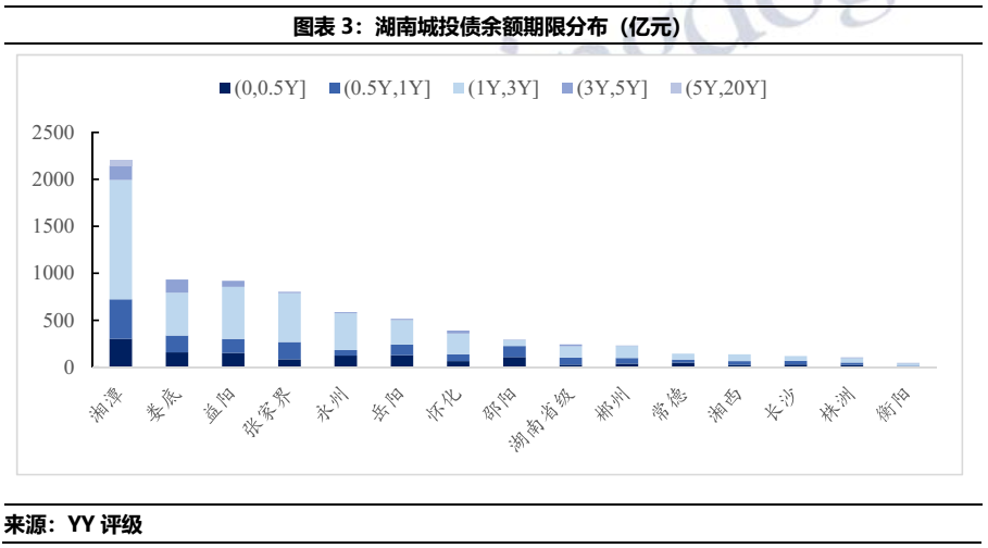 存量而言,長(zhǎng)株潭和環(huán)洞庭湖區(qū)域存量高,湘西存量規(guī)模小;結(jié)構(gòu)方面,協(xié)會(huì)產(chǎn)品、公司債、企業(yè)債占比分別是48%、33%和17%;多數(shù)地級(jí)市存量債多為協(xié)會(huì)產(chǎn)品,湘西州、邵陽(yáng)、郴州企業(yè)債量稍高。期限而言,期限存量而言,相關(guān)債券到期(含行權(quán))均集中于3年內(nèi)。其中一年內(nèi)到期壓力最高的區(qū)域?yàn)橄嫣叮ㄕ急?7.13%)、婁底(57%)、益陽(yáng)(55%)。