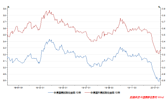 與T相同,215在開盤受疫情以及央媽OMO操作降息影響給出一個3.25的開盤后,便一路TKN,盤中最低價到了3.16。下午OFR逐漸增多,加上當天資金真的緊,很多交易員大佬們都在忙著平頭寸,逐漸回吐上午的漲幅,最終利率收在了3.2264。十年國債也很刺激,節(jié)前收在2.9932,大家還在討論開年估計會圍繞3.0關(guān)口出現(xiàn)磨盤,事實卻是3.0關(guān)口直接越過~最后收在2.8231~