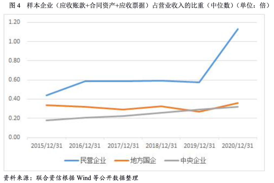建筑施工企業下游占款壓力整體上升,民營建筑施工企業下游占款情況最為嚴重。