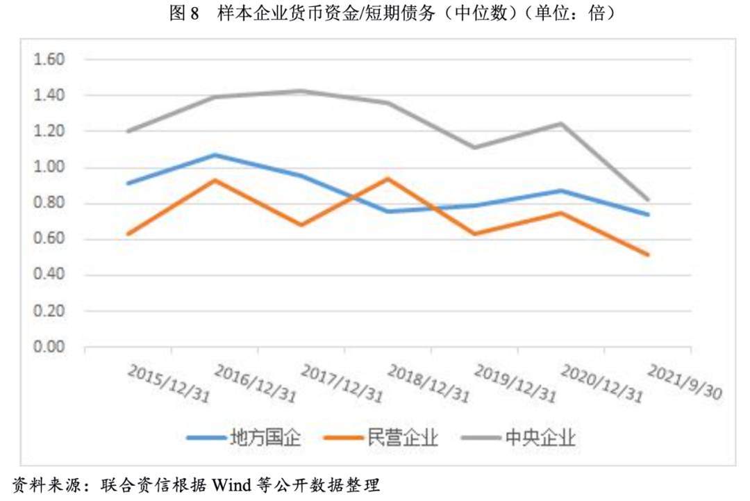 從貨幣資金對短期債務的保障程度看,民營建筑施工企業貨幣資金對短期債務覆蓋程度最低。