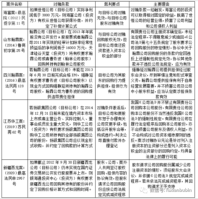 (一)司法判例解析對(duì)賭條款/協(xié)議的法律效力