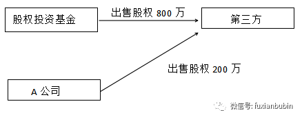 假設(shè)股權(quán)投資基金(投資方)投資A公司,若此時(shí)股權(quán)投資基金占有的股份為20%,A公司的其他股東占有的股份為80%,此時(shí)若A公司擬出售1000萬股的股權(quán)給第三方,其交易結(jié)構(gòu)為: