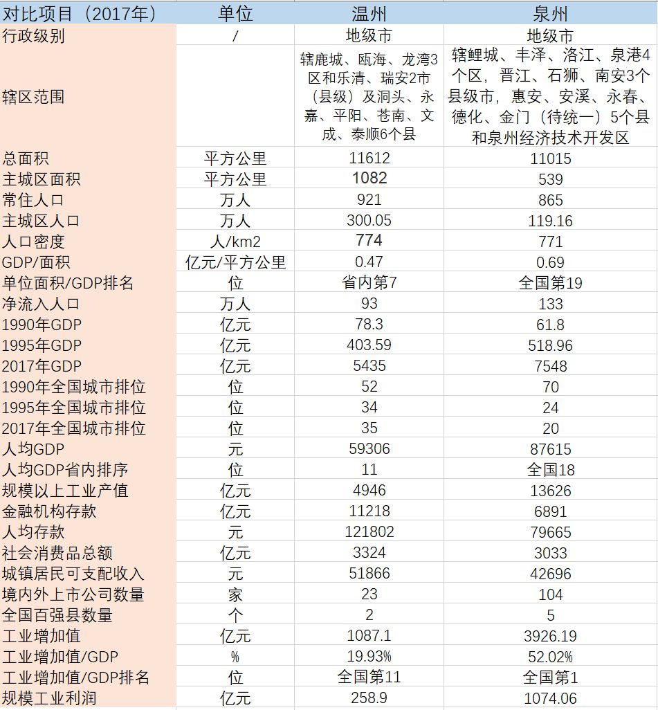 從地理位置上說泉州北有省會福州,南有特區(qū)/計劃單列市/副省級等各類資源加持的廈門,夾縫中求生存的泉州只是一個連一把手都不是省委常委的地級市,各方面都凸顯先天不足。先看人口,城市總面積與總?cè)丝趦傻叵喈?dāng),但是主城區(qū)面積泉州僅為溫州的49.81%;泉州城區(qū)人口約119萬人,為溫州的40%。119萬人是什么概念?都達(dá)不到通一條城市輕軌150萬人的要求。