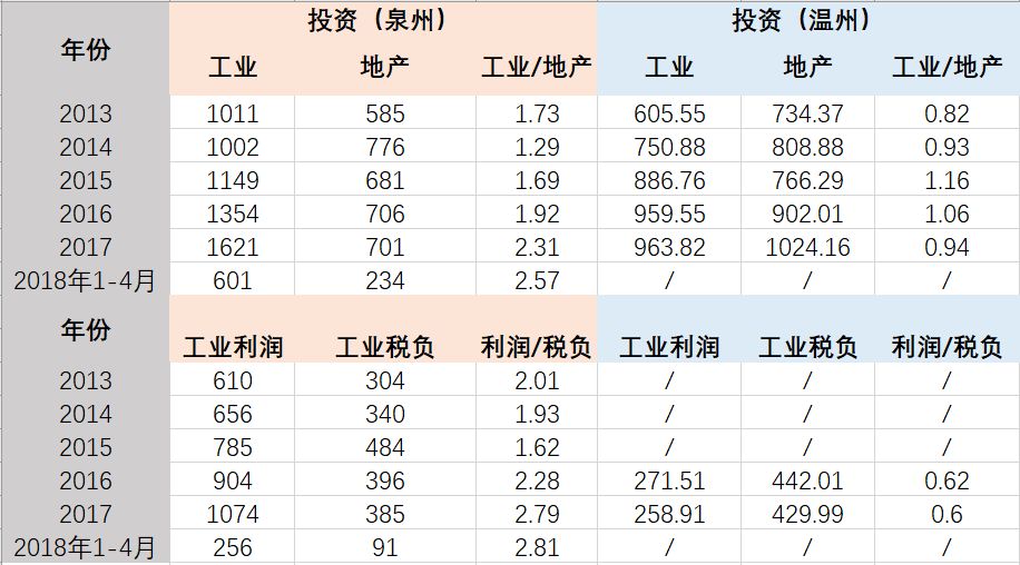 第三,如表5,2017年當(dāng)溫州的利潤/稅負(fù)比僅僅只有0.6時,泉州已經(jīng)高達(dá)2.79,高了將近5倍。泉州是一個不斷給工業(yè)減稅的良心城市,政府對工業(yè)大力扶持的決心確實造成了泉州工業(yè)的輝煌。但從另一個角度來看,雖然2017年規(guī)模以上工業(yè)產(chǎn)值中泉州1.36萬億,溫州4946億;泉州有將近2000多家銷售額超億元的企業(yè),但你找不到一家巨無霸級別企業(yè)。實際上,泉州近年來不少中小制造業(yè)企業(yè)倒下,大企業(yè)總部外遷,現(xiàn)代服務(wù)業(yè)尚未形成氣候,單一的傳統(tǒng)制造業(yè),企業(yè)經(jīng)營的現(xiàn)實情況并沒有數(shù)據(jù)看起來那么靚麗。