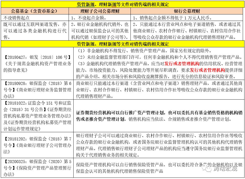 2、明確相關細分資管行業的準則需遵循資管新規,并從發行端、銷售端與投資端等各環節統一了各類資管產品的政策要求,避免監管套利與不平等競爭。
