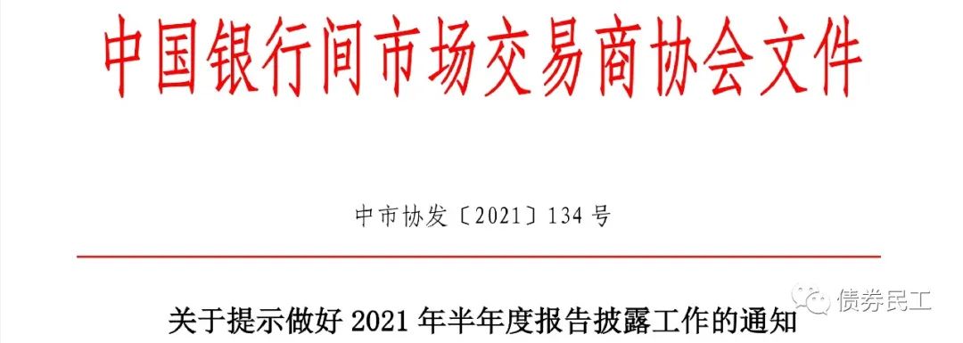 2021年7月23日,中國銀行間市場交易商協會印發《關于提示做好2021年半年度報告披露工作的通知》(中市協發[2021]134號),提示債務融資工具的發行人和增信機構做好半年度報告的披露工作,應于 2021 年 8 月 31 日前披露 2021 年半年度報告。不同于上交所和深交所,在此之前,交易商協會很少單獨印發文件提示半年度報告披露問題。因此,發行人和增信機構這次真的是需要嚴肅對待半年報的披露問題。