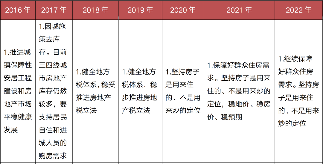 表:2016年-2022年政府工作報告關于房地產內容表述
