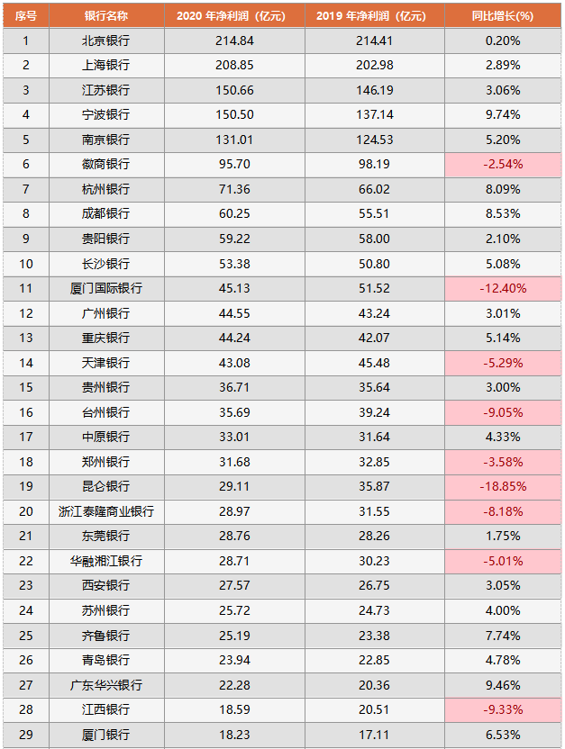 5家城商行實現百億級凈利潤,超百家農商行呈下滑。