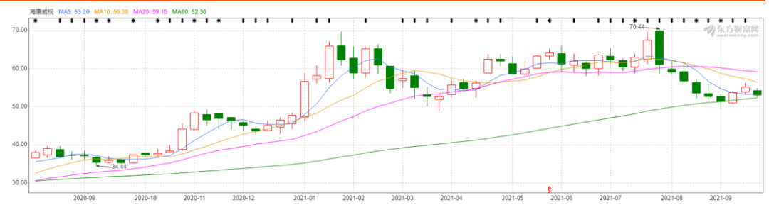 作為該基金中報的頭號重倉股海康威視,在一季度年后經歷大幅回調過后,二季度小幅反彈,整個二季度和三季度基本上就處于橫盤震蕩狀態,表現比較一般。