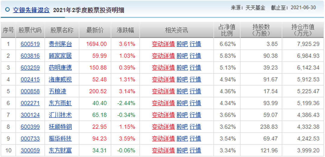 自2020年7月3日至今,其管理的“交銀先鋒混合”收益超過了60%,今年以來的收益也達到了16.42%,在同類中排名前20%,這其中的奧秘就藏在基金中報里。