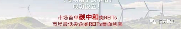 9、強調(diào)特定產(chǎn)品市場首單+特定類型企業(yè)特定產(chǎn)品最低發(fā)行利率的海報,比如市場首單碳中和類REITs及市場最低央企類REITs最低。