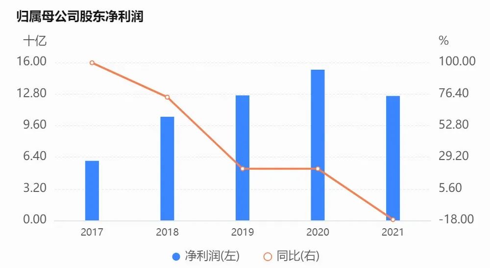 利潤方面新城控股表現(xiàn)沒那么好,2021年凈利潤137.6億元,同比下降16.4%;歸母凈利潤同比下降17.42%,為125.98億元,相比過去5年大幅滑坡。