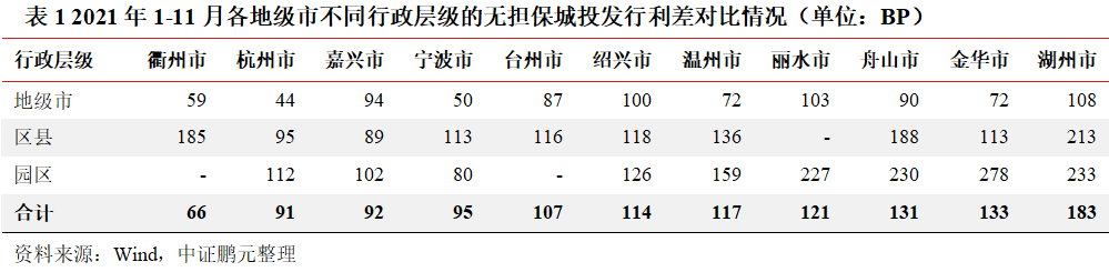 1、第一梯隊中,杭州市、寧波市各行政層級城投平臺發行利差均位于省內低位;嘉興市地級市平臺與區縣平臺發行利差出現倒掛,主要系地級市平臺內包括較多實際業務區域在區縣,但股權在地級市的平臺;衢州市發債平臺主要為兩家地級市平臺,拉低區域整體發行利差。