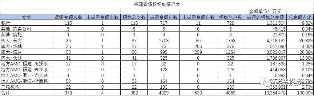我們共統(tǒng)計(jì)到福建省2019年債權(quán)處置公告382條4329戶,轉(zhuǎn)讓成交公告178條3441戶,數(shù)量規(guī)模與2018年接近,但金額規(guī)模較2018年有變化。