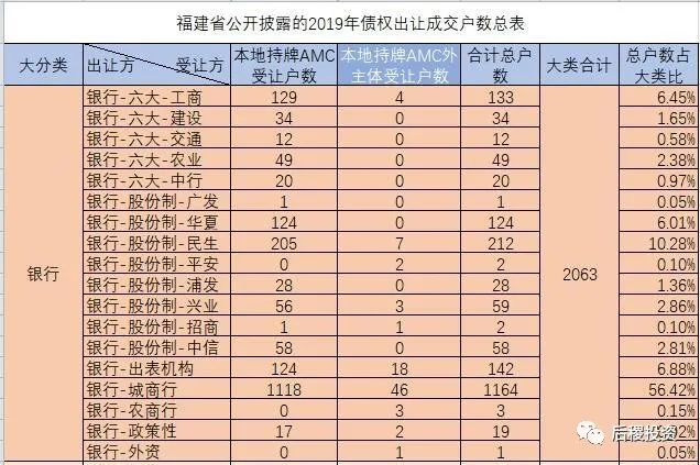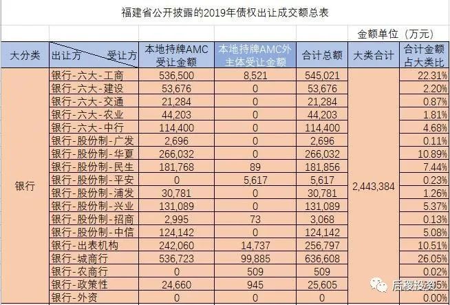 a、單從金額上看,2019年福建省一級市場銀行出讓債權(quán)總金額約244億元左右,其他機(jī)構(gòu)約25億元左右,合計(jì)269億元左右,由于有關(guān)信達(dá)的金額數(shù)據(jù)缺失,故此金額應(yīng)當(dāng)更高(信達(dá)的實(shí)際受讓金額按與其他AMC的戶數(shù)比例推算,應(yīng)當(dāng)在25-30億之間)。對比2018年的380億元左右,規(guī)模大幅下降。
