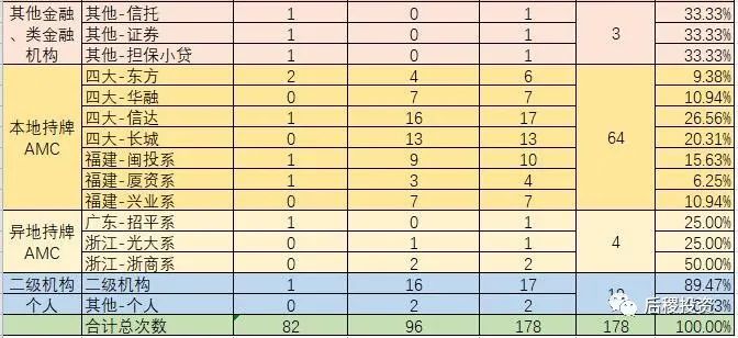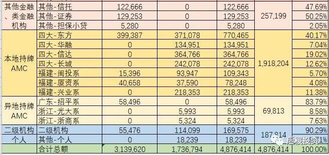 c、二級市場中,本地持牌AMC總出讓額約192億元,相較去年240億元左右有所下降,但如加上信達(dá)未透露金額的部分,總規(guī)模相差應(yīng)該不大。但具體到各家單位,則變化巨大。2018年出讓規(guī)模均在30億以上的福建地方AMC,今年的出讓規(guī)模大幅下降,其中廈門資管從52億降到了7.8億,閩投資管從32億降到了10.9億,興業(yè)從35億左右降到了22億左右。四大全國AMC中,東方的出讓規(guī)模大幅上升,從19億元左右上升到了77億左右。